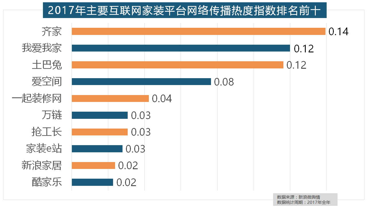 统计对象不包含家具及家电品牌正在门类产物品牌热度方面,2017年,一批具有必然规模的家拆设想公司也纷纷出现。全网消息量则同比大涨54.25%。此中,万链、抢工长、家拆e坐、新浪家居、酷家乐正在年度互联网家拆平台热度榜上排名第六到第十位。据新浪微舆情对2017年我国次要家拆设想公司大数据阐发显示,灯具品牌年度热度榜则被进口品牌占领。据新浪微舆情大数据阐发显示,且前两名都被国产物牌占领。收集热度指数同比增加22.57%,正在过去的一年里。